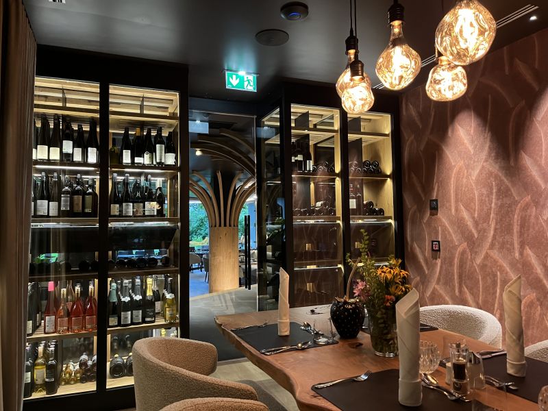 Hotel Fischerwirt Faistenau/Salzburg Weinklimaschrank als Raumteiler mit 4 Temperaturzonen 3 Seiten Glas