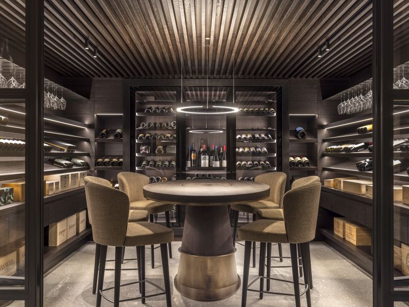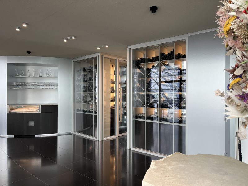 Hangar 7 Restaurant Ikarus Red Bull 2 begehbare Weinräume temperiert auf 13° Ausführung Aluminium und Räuchereiche